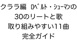 おすすめの楽曲(初中級) 【ピアノ】クララ編「ロベルト・シューマンの30のリートと歌」取り組みやすい11曲 完全ガイド クララ・シューマンが編曲した「ロベルト・シューマンの30のリートと歌」から、ツェルニー30番入門程度で挑戦できる11曲を厳選。技術的に易しく、シューマンの深い詩情を味わえる作品を、演奏時間・難易度・詩人情報とともに詳しく解説します。 2025.10.17 おすすめの楽曲(初中級)おすすめの楽曲(中級)- シューマン (1810-1856)- 選曲- クララ・シューマン (1819-1896)