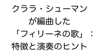 おすすめの楽曲(中級) 【ピアノ】クララ・シューマンが編曲した「フィリーネの歌」:特徴と演奏のヒント クララ・シューマンが編曲したロベルト・シューマン「フィリーネの歌」のピアノ独奏版を徹底解説。原曲との比較、編曲の特徴、演奏テクニック、表現のポイントを詳しく紹介します。ツェルニー40番入門レベルから挑戦できる中級者向け作品です。 2025.10.15 おすすめの楽曲(中級)- 選曲- シューマン (1810-1856)- クララ・シューマン (1819-1896)