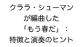 このクライマックスにおけるメロディラインは、シューマン「リーダークライス Op.39 より 第12曲 春の夜」のクライマックスと共通しています。聴き比べることで、シューマン特有の感情表現の方法が理解できるでしょう。