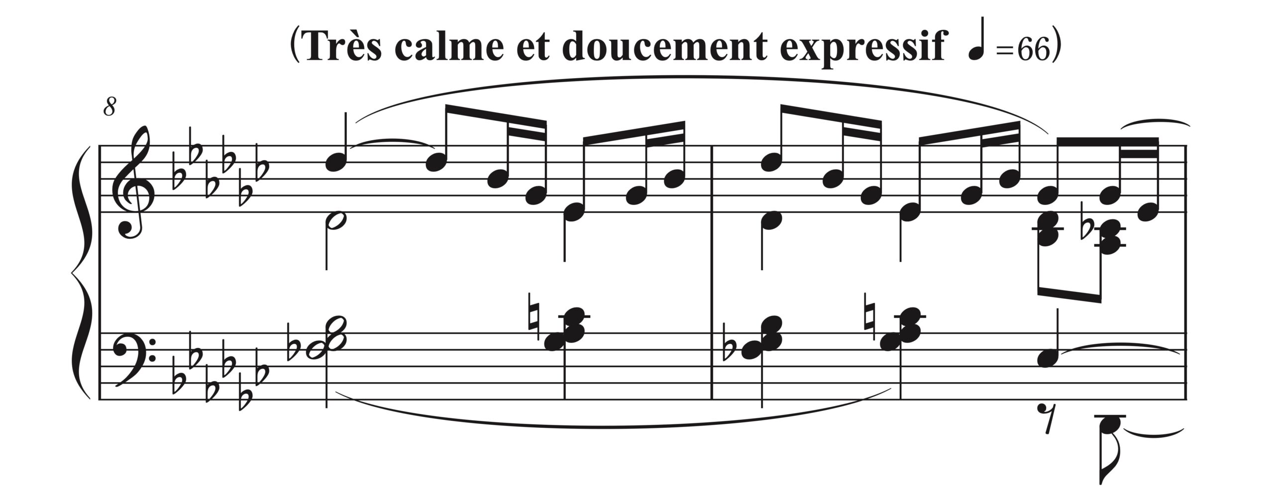 1小節目の「sans rigueur(厳密でなく)」という指示は、拍子が無くなってもいいという意味ではありません。特に曲頭では一応の拍感覚は持っていないと、音楽の骨格が見えなくなってしまいます。